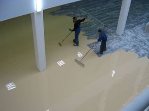 Для заливки жидких полов применяют специальные лакокрасочные составы на основе полиуретановых и эпоксидных смол.